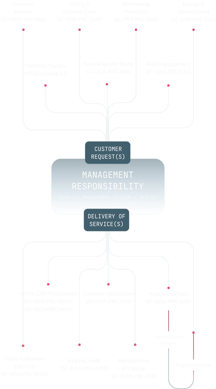 Our QMS Map outlines the full life cycle, from customer requests and contract review to delivery, audits, and continuous improvement. Each process is documented, measured, and optimized to ensure accountability at every stage.